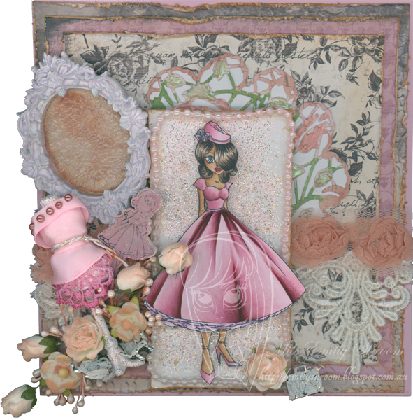 one but it’s impossible to see the stencilled ones under all the layers). I’m also entering my card at Crafty Gals’ Corner where their theme is to use a die cut.