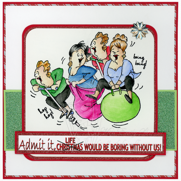 What a fun card. Love the bouncy group of ladies and how you added the 4th one to make it personal. Thanks so much for sharing with us at Merry Monday.